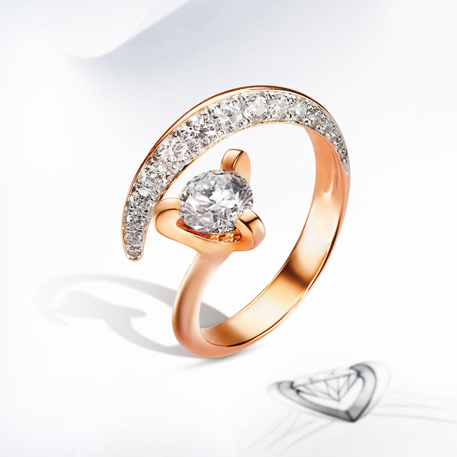 品牌經典的「一筆成型」設計,延伸出俐落的舒適線條,星辰般閃耀的美鑽以不到1mm寬幅的鑲嵌點,凌空坐落於三瓣心坎鑲中。精湛的微鑲技術讓鑽石在指間得以有最大的火光閃耀,呈現獨特時尚又舒適的戒指設計!